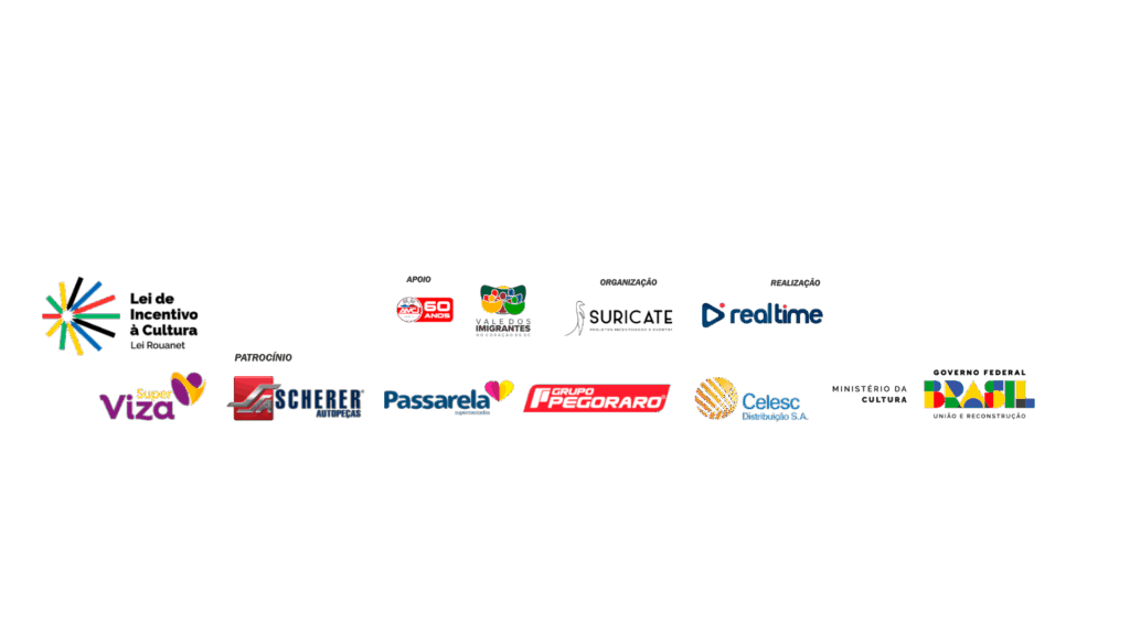 Lei de Incentivo a cultura, Superviza Supermerdados, Scherer, Passarela Center, Deycon, Celesc, Ministério da Cultura e Governo Federal.