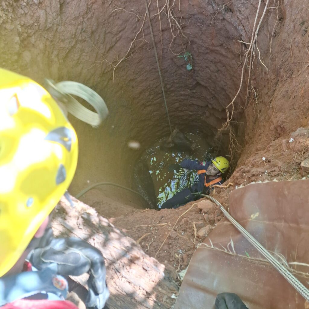 O animal encontrava-se coberto pela água e amarrado pelos chifres para não se afogar. A guarnição realizou a descida no poço por um sistema de rapel guiado, e em seguida amarrou as pernas do animal com uma cinta de carga, e por fim o mesmo foi içado para fora do poço com o auxílio de um caminhão munk.