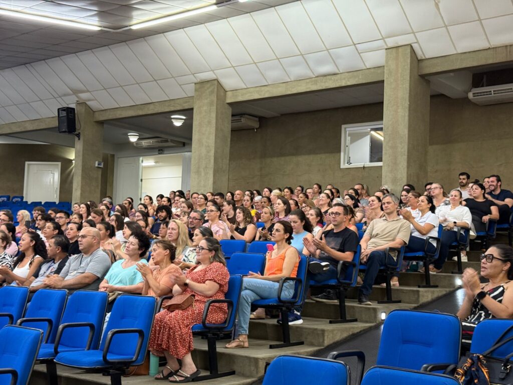 Na última sexta-feira (27), o Auditório Afonso Dresch, da Unoesc, sediou uma importante capacitação voltada aos servidores e profissionais da rede das Secretarias Municipais de Saúde e de Assistência Social de Joaçaba. O encontro teve como tema “Entre o Cuidar e o Proteger: Enfrentamento à Violência contra a Mulher na Rede de Atenção”, reunindo autoridades, especialistas e trabalhadores que atuam diretamente no acolhimento e encaminhamento de casos.