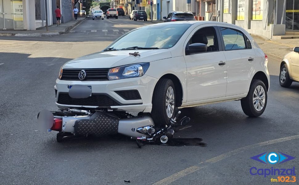 Um carro parou sobre uma motocicleta após um acidente registrado na manhã desta sexta-feira (31), na Rua Presidente Nereu Ramos, esquina com a Rua Ernesto Hachmann, próximo à ponte Irineu Bornhausen, no centro de Capinzal. A ocorrência mobilizou o Corpo de Bombeiros por volta das 8h.