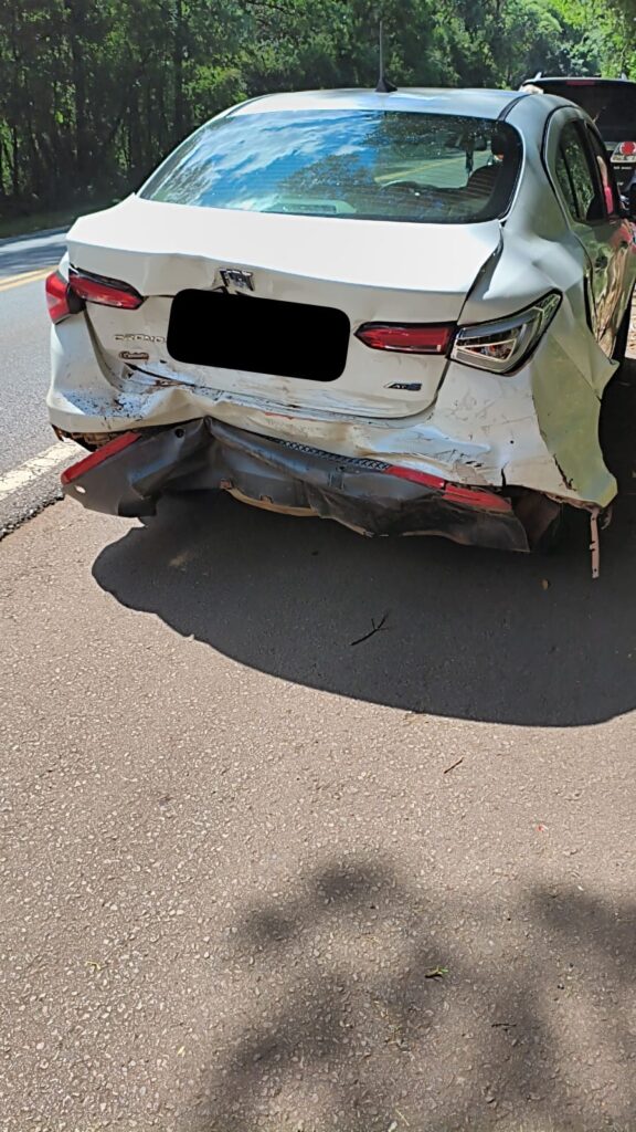 Em um dos veículos, um Fiat/Palio, estava o motorista que foi encaminhado pelo SAMU à unidade básica de saúde e sua esposa, de 25 anos, que relatou dores no pé direito e também precisou de atendimento da equipe médica. Em seguida foi encaminhada ao Hospital Universitário Santa Terezinha.