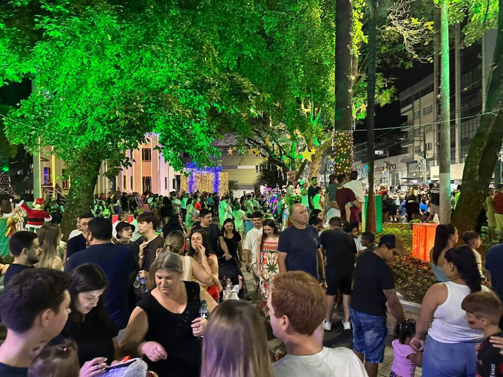 Além do movimento nas lojas, o clima natalino ganha ainda mais destaque na praça em frente à Prefeitura, onde todas as noites estão sendo realizadas atrações voltadas para as famílias, com apresentações culturais e atividades especiais.