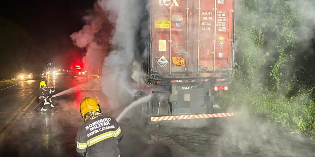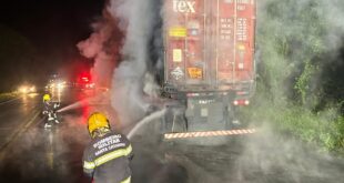 O motorista de um caminhão Scania R420 morreu após tombar o veículo na BR-153, em …