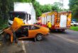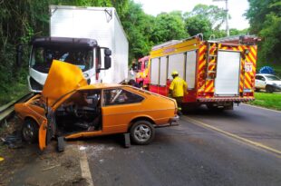 Uma colisão entre um VW/Passat e um caminhão Iveco na SC-303, próximo à pipoqueira, em …