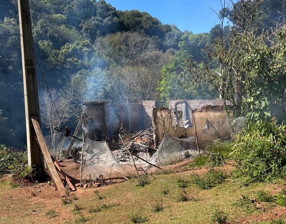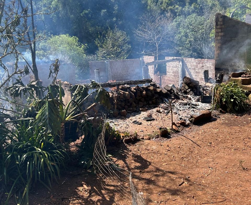 Uma casa foi completamente destruída pelas chamas, no interior de Herval d’Oeste, no último sábado, 27 de Setembro. O Corpo de Bombeiros atendeu a ocorrência por volta das 13h10, na Linha Barreiros.