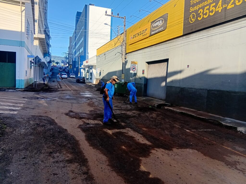 A Secretaria de Obras está desde o início da manhã desta segunda-feira, 23, limpando os principais pontos atingidos pela enxurrada.