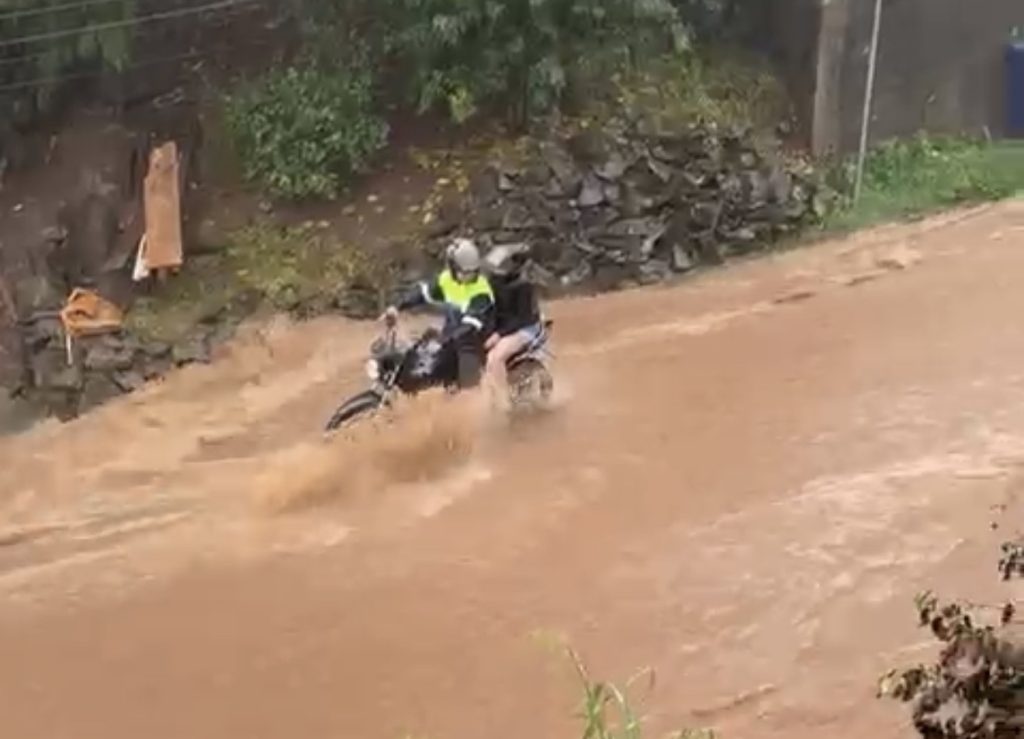 Houve também uma situação desesperadora, onde um casal, em uma moto, ficou ilhado. O corpo de bombeiros precisou atuar em diversas ocorrências para auxiliar os atingidos.