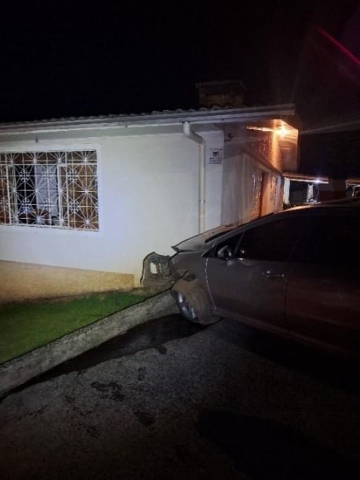 Um automóvel Peugeot/408 colidiu contra a parede de uma residência, do bairro Santo Antônio, em Herval d’Oeste na noite deste domingo, 1º de Fevereiro.
