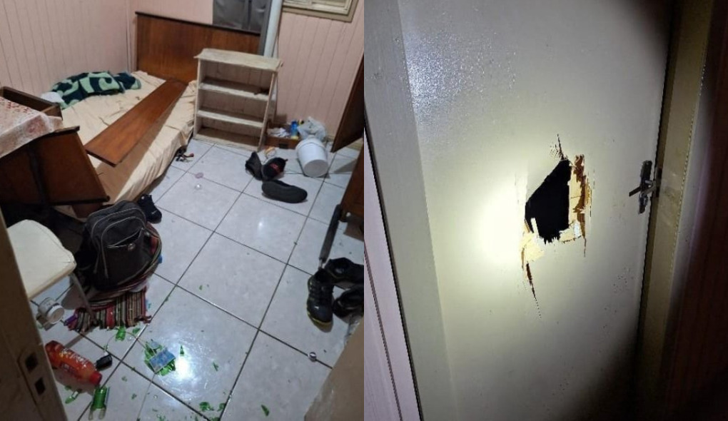 O homem ainda havia danificado a pensão onde mora. A proprietária do local, uma idosa de 89 anos, informou que o homem iniciou o surto dentro do quarto, quebrando objetos, danificando portas e arrancando o portão da residência.