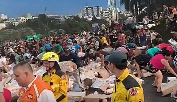 Populares levaram a carga de carne congelada após liberação em Xanxerê (Foto: Divulgação) Um vídeo que circula nas redes sociais mostra centenas de pessoas recolhendo a carga de uma carreta que tombou na tarde desta sexta-feira, dia 27, na BR-282, em Xanxerê, no Oeste catarinense. Parte dos populares aguardou autorização …
