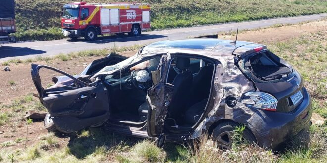 Mulher foi socorrida com ferimentos graves (Fotos: Corpo de Bombeiros) Uma mulher foi socorrida em estado grave após capotar o veículo que conduzia na tarde desta quinta-feira, dia 25, na BR-153, em Água Doce, no Meio-Oeste. Segundo o Corpo de Bombeiros, a vítima de 38 anos dirigia um Peugeot 208 …