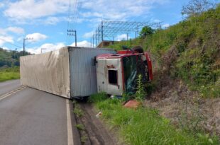 Um Ford/Cargo com placas de Cascavel-PR, tombou por volta das 06:30 da manhã desta quinta …