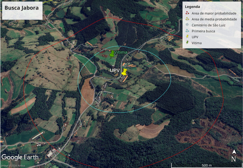 Após o acionamento, as equipes iniciaram imediatamente as operações de busca, que envolveram levantamento de informações junto a familiares e moradores da comunidade, planejamento técnico da missão e emprego de recursos especializados. Durante o período noturno, foram realizadas varreduras aéreas com drone equipado com câmera térmica e infravermelha, além de buscas terrestres em locais destacados pelo drone como possível localização da vítima, por meio do sensor térmico.
