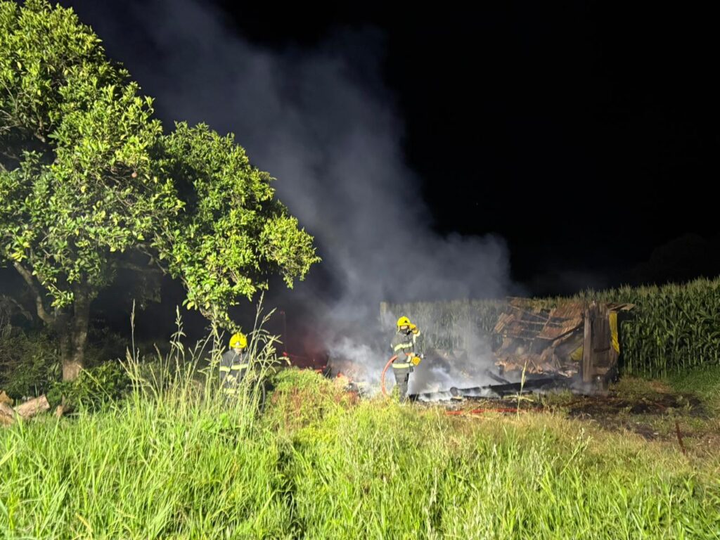 Na edificação foi perdida uma forrageira, um debulhador e um motor elétrico de 7,5cv que foram consumidos pelo incêndio. A guarnição realizou o combate e após o rescaldo utilizando aproximadamente 3000 litros de água no local havia energia elétrica e a guarnição fez o corte da fiação, após local seguro as guarnições retornaram ao quartel.