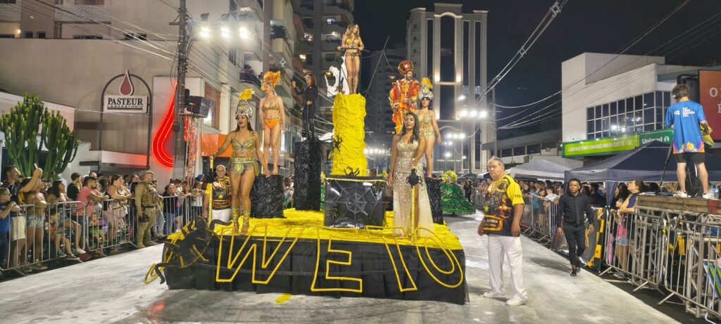 Reconhecida como a Capital Catarinense do Carnaval, Joaçaba viveu neste sábado (14), uma noite histórica com a realização da primeira noite oficial de desfiles do Carnaval 2026. A Avenida XV de Novembro, transformada na tradicional Avenida do Samba, recebeu um público entusiasmado, com arquibancadas e camarotes lotados em uma celebração marcada por cores, brilho, música e muita emoção.