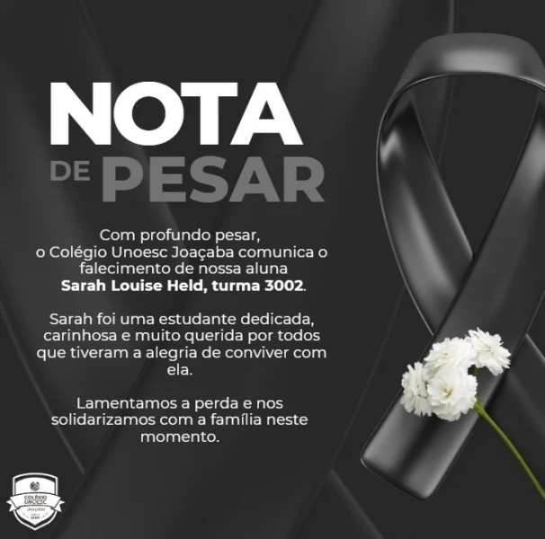 A jovem iria se formar no terceirão do colégio Unoesc neste sábado. A direção da unidade escolar emitiu uma nota lamentando o ocorrido.