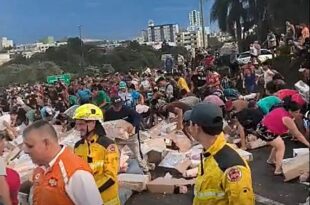 Populares levaram a carga de carne congelada após liberação em Xanxerê (Foto: Divulgação) Um vídeo que circula nas redes sociais mostra centenas de pessoas recolhendo a carga de uma carreta que tombou na tarde desta sexta-feira, dia 27, na BR-282, em Xanxerê, no Oeste catarinense. Parte dos populares aguardou autorização …