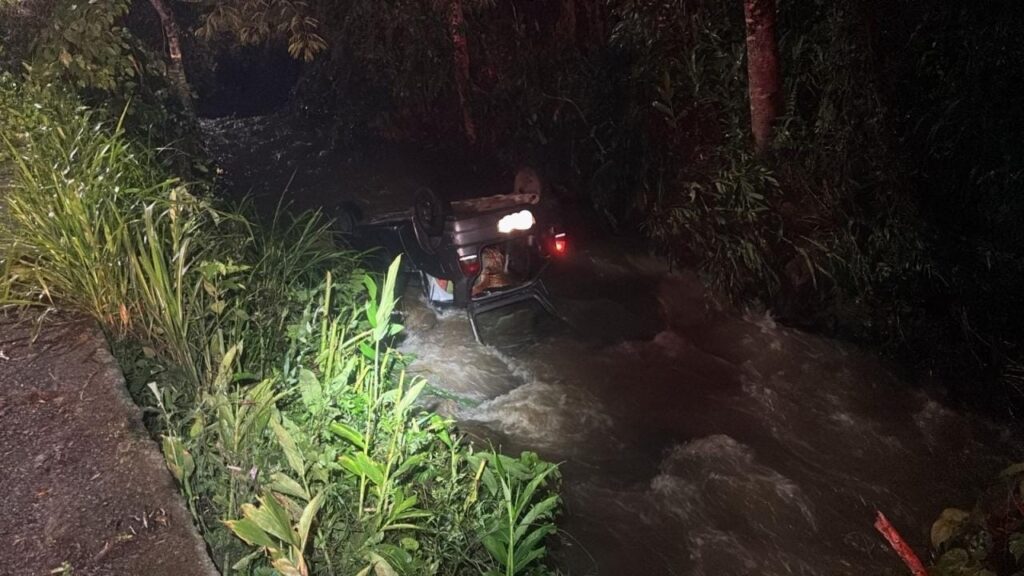 De acordo com o condutor do veículo, ele teve a frente cortada por outro automóvel, causando a perda de controle e caindo no riacho. Ele apresentava escoriações na região abdominal, corte na cabeça e dor na região das costelas do lado direito. O condutor foi encaminhado pelo SAMU ao Hospital Universitário Santa Terezinha (HUST) para avaliação médica.