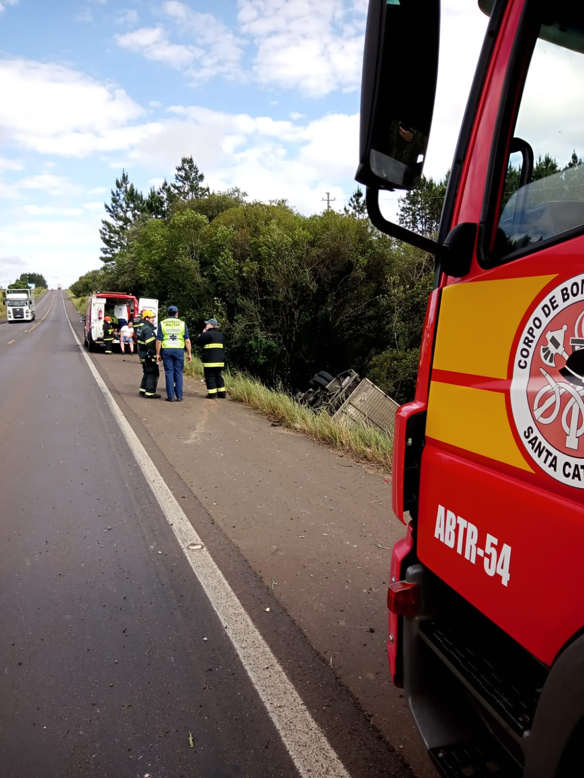 De acordo com informações do Corpo de Bombeiros, no local foi constatada saída de pista seguido de tombamento e queda em ribanceira do caminhão baú Volkswagen 24-250 modelo Worker 6×2 placas Mercosul, com carga de tintas, conduzido pelo jovem. A vítima encontrava-se no interior da cabine do caminhão estável porem apresentando tonturas e sonolência, relatou ter sofrido um desmaio vindo a perder o controle do caminhão.