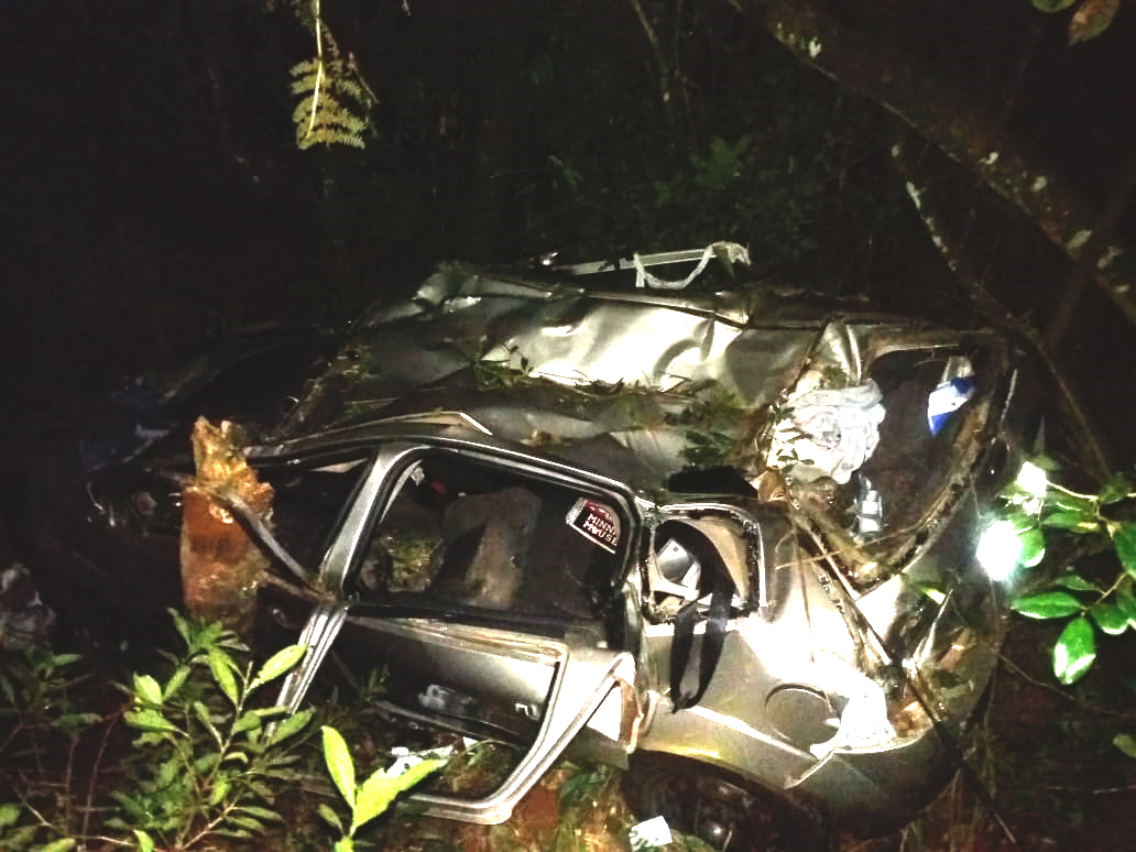 Pai e filho ficam feridos após carro sair da pista e capotar na BR-470 em Brunópolis