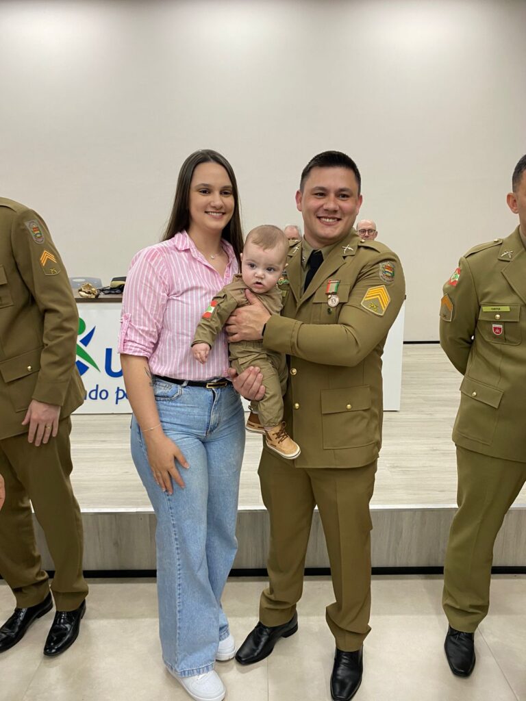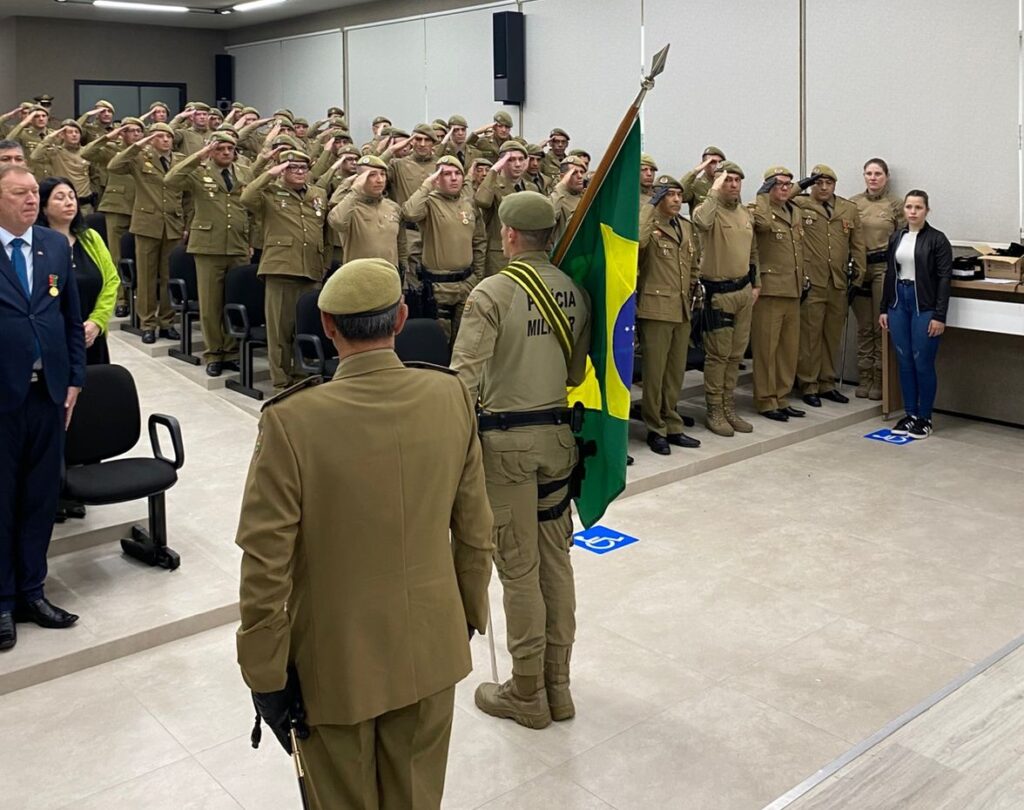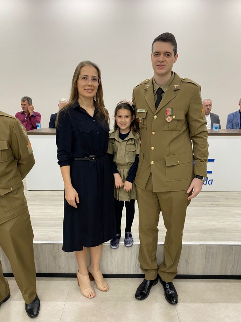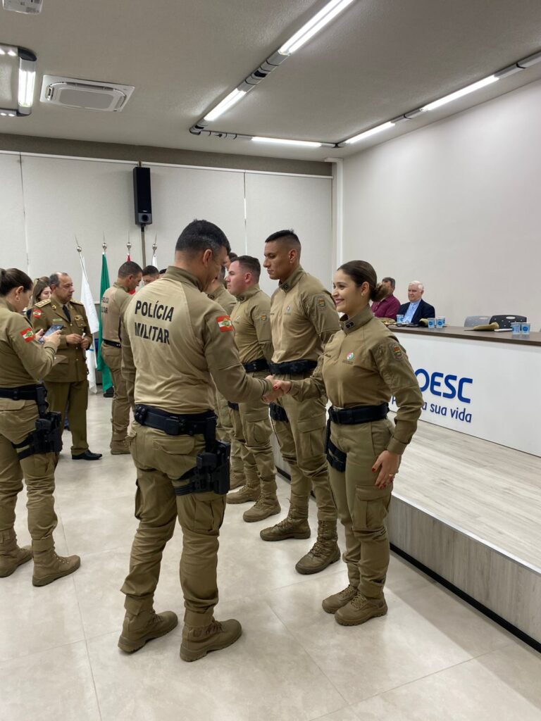 Em seu pronunciamento, o Primeiro Sargento PM José Ronaldo Branco, comandante do 26º Batalhão, exaltou a trajetória da Polícia Militar de Santa Catarina, que neste ano completa 190 anos de história. Ele destacou que a corporação “faz jus ao reconhecimento de ser a melhor do país” e valorizou o trabalho dos homenageados, reforçando o compromisso da instituição com a segurança pública e a comunidade.