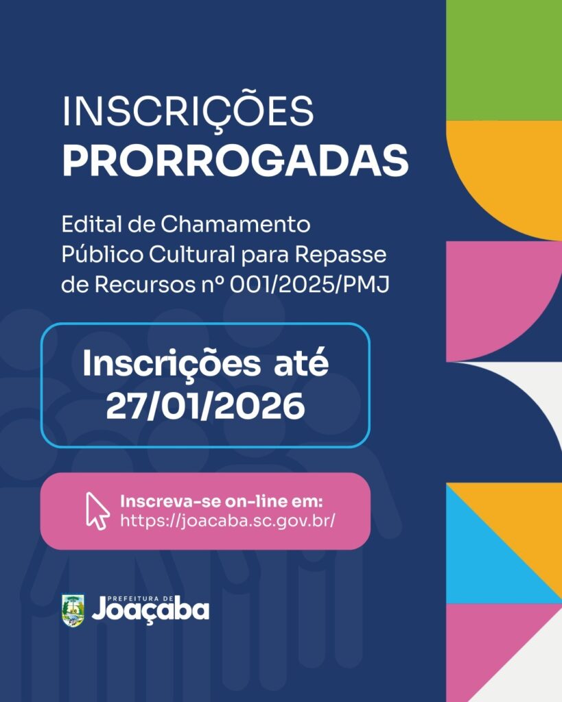 A Prefeitura Municipal de Joaçaba, por meio da Secretaria de Comunicação, Cultura, Turismo e Eventos, divulgou a primeira retificação do Edital de Chamamento Público Cultural para Repasse de Recursos nº 001/2025/PMJ.
