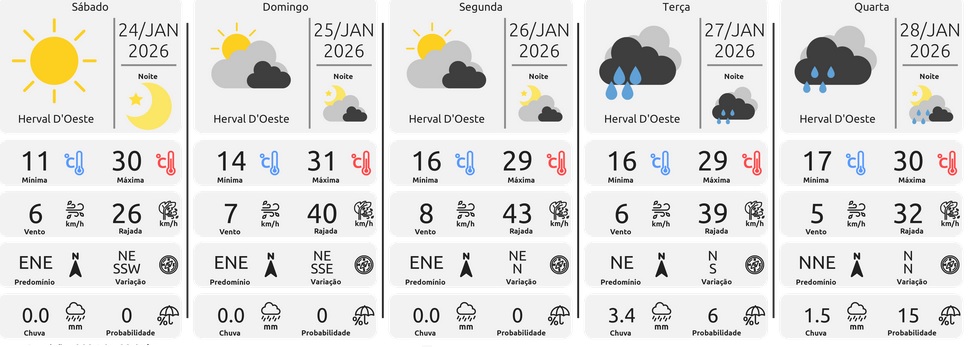 Confira a previsão do tempo para os próximos dias em Herval d’Oeste.
