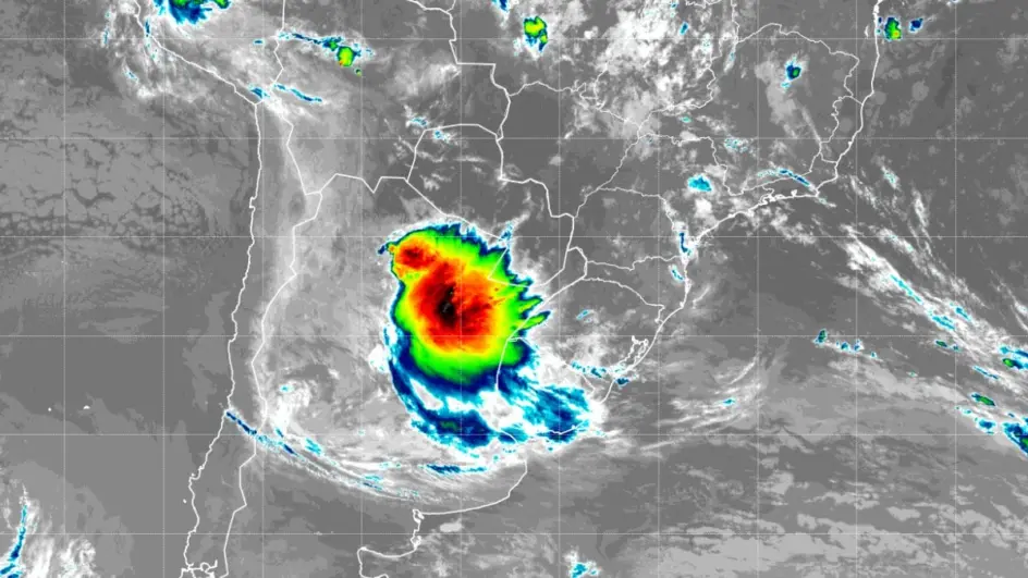 Imagens de satélite mostram aproximação do ciclone no Brasil (Foto: Epagri/Ciram, Reprodução)