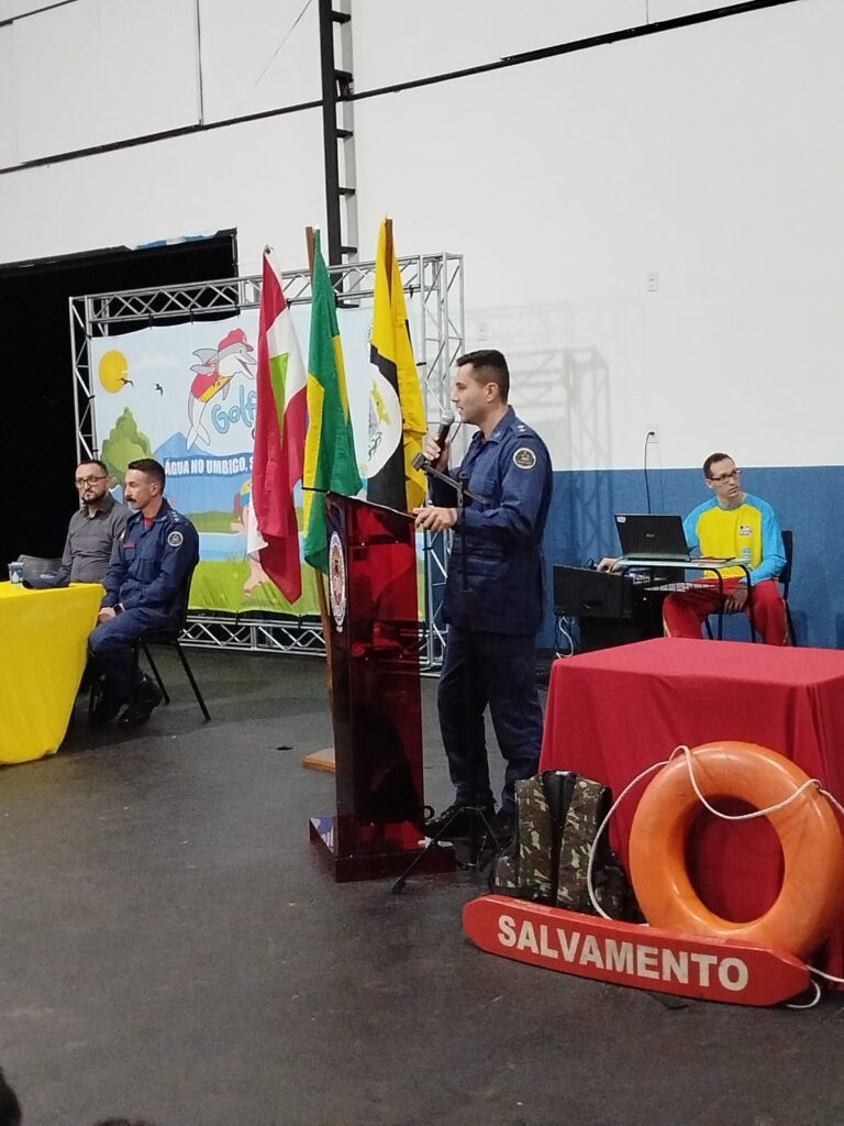 Participaram da formatura, além dos oficiais, representantes da administração municipal, pais e amigos. O curso foi coordenado pelo 1º Tenente Lucas Zacchi Rausis. O Golfinhos foi instituído no verão de 1998/começo de 1999 no intuito de estreitar seu relacionamento com a comunidade investindo na capacitação das crianças e na construção de uma sociedade com valores e princípios que respeitem à vida e o meio ambiente.