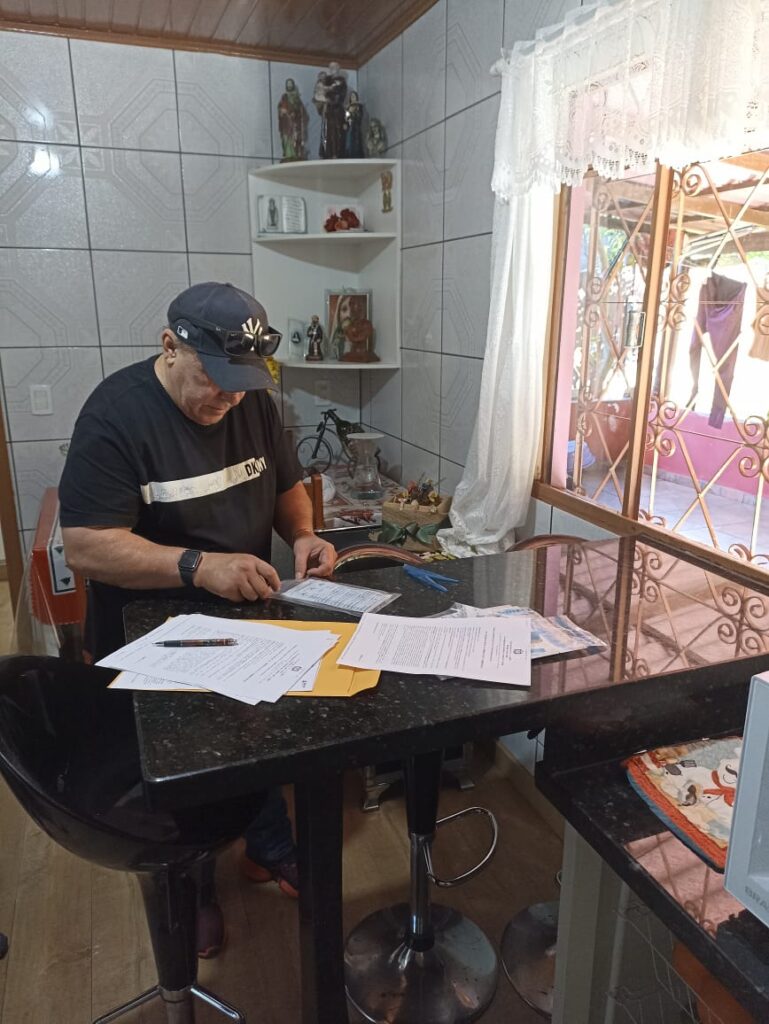 A ação ocorreu no município de Herval d’Oeste, na residência do investigado de 62 anos. A diligência contou com a presença de um Oficial de Justiça, que acompanhou as equipes policiais para efetivar a instalação da tornozeleira eletrônica e cientificar o investigado pessoalmente sobre as condições e obrigações impostas pelo Poder Judiciário.