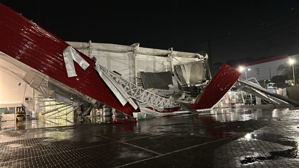 Um forte temporal atingiu Videira na noite desta sexta-feira, 29, e provocou diversos estragos no município. Uma das ocorrências que mais chamou a atenção foi o desabamento de parte de uma estrutura da empresa Videplast, localizada às margens da SC-135, na região de Santa Lúcia. A força dos ventos derrubou parte do telhado na área dos depósitos e estacionamentos de caminhões, causando destruição significativa no local. Na empresa a estrutura foi a mais afetada entre todas as ocorrências registradas.