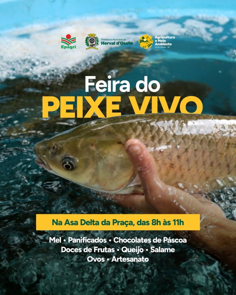 Nesta quinta-feira, 2 de Abril, acontece na Praça de Herval d’Oeste a tradicional Feira do Peixe Vivo e uma edição extra da Feira da Agricultura Familiar e Artesanato.