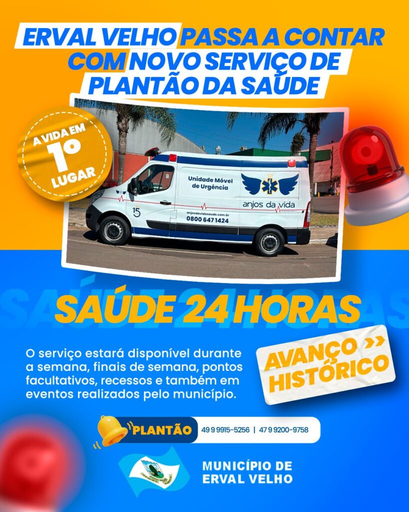 A Administração Municipal de Erval Velho informa que, desde esta quarta-feira, 01 de Abril, inicia um novo modelo de plantão da saúde no município.