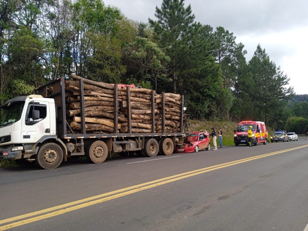 No local, foi constatado que havia ocorrido uma colisão traseira entre um carro e um caminhão, em frente à uma Ervateira. Envolveram-se no acidente um Chevrolet/Celta de Vargem Bonita, conduzido por uma mulher de 29 anos, que encontrava-se fora do veículo consciente e orientada, e um caminhão/Volvo de Jaborá, conduzido por um homem de 43 anos, que também encontrava-se fora do veículo, consciente e orientado. Ambos os envolvidos recusaram atendimento médico.